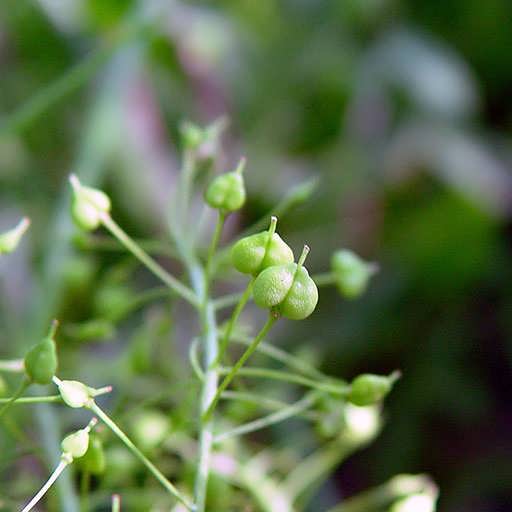 میوه اَزمَک خورجینک تخم مرغی پهن یا قلبی شکل و ناشکوفا است که هر میوه معمولاً حاوی 2 و به ندرت 1 دانه می باشد. بذرها یک سطح پهن و یک سطح گرد دارند و دارای چهار زائده طویل هستند که زوائد کوچکتر مابین آن ها قرار دارند.