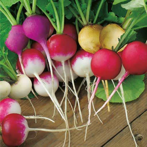 تربچه میکس ۷ رنگ گونه ای تربچه از دسته سبزیجات خوراکی به شمار می رود که در رنگ های مختلف قرمز، سفید، بنفش، زرد و … ظاهر می شود که برگ های بزرگ دندانه داری با شیارهای عمیق به رنگ سبز دارد. این نوع تربچه جنبه زینتی نیز دارد و از طعم دلچسبی برخوردار است که از آن برای تازه خوری، تزئین و سبزی خوردن استفاده می کنند.