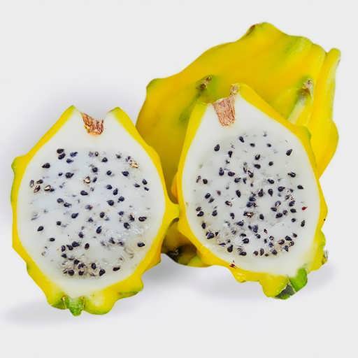 دارگون فروت زرد که معروف است به میوه اژدها با نام علمی Hylocereus undatus که در رنگ های مختلف زرد، قرمز، صورتی و… وجود دارد. دارگون فروت زرد میوه نوعی کاکاتوس است که با رسیدن میوه خارهای آن را تمیز میکنند و میتوانند آن را مصرف کرد. هر کدام از دارگون فروتها با رنگهای مختلف طعم خاص خود را دارند شما با خوردن این میوه عجیب و غریب احساس میکنید در مناطق استوایی قرار دارید.