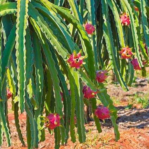 دراگون فروت سفید (Dragon Fruit) یا همان میوه اژدها نوعی کاکتوس مختص مناطق گرمسیری و نیمه گرمسیری جهان میباشد. البته در صورت به وجود آوردن شرایط کاشت، دمای مناسب و همچنین حفظ کردن گیاه از سرما میتوان آن را در اکثر نقاط کشت نمود. رنگهای رایج میوه دراگون فروت شامل قرمز تو قرمز و قرمز تو سفید است این میوه به رنگهای زرد یا نارنجی و سبزهم یافت میشود. طعم این میوه زیبا و شگفتانگیز ترکیبی از طعمهای کیوی، گلابی، سیب و موز است.