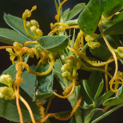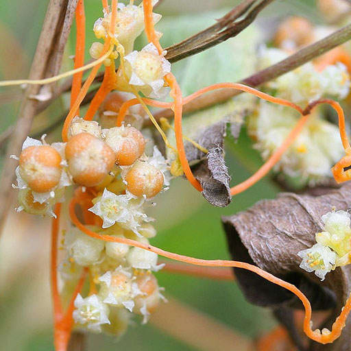 - جوانه زنی: بذرها پس از جوانه زنی ساقه های نازک و انگلی تولید کرده و به دور گیاه میزبان می پیچند تا بتوانند تغذیه را آغاز کنند.