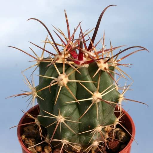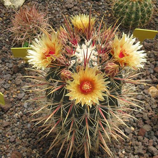 از هر کدام از این آرئولها ۱۳ الی ۱۷ عدد خار مرکزی و ۵ الی ۸ عدد خار شعاعی بیرون زده است. خارهای مرکزی به رنگ قهوهای دیده میشوند. در مقابل خارهای شعاعی سفید رنگ و باریک هستند. این خارها طولی بین ۲.۵ تا ۴ سانتیمتر دارد و از گیاه در مقابل حشرات محافظت میکنند. گلهای این گیاه ممکن است اواخر بهار، اوایل تابستان یا اواخر تابستان شکوفا شوند.