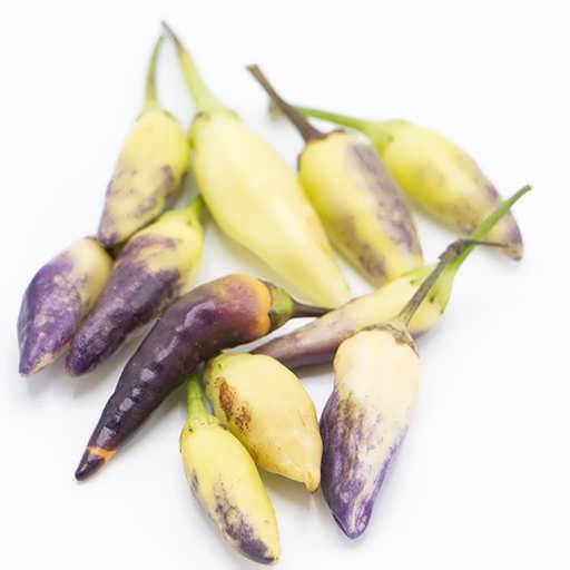این نوع فلفل از نظر ظاهری تخم مرغی شکل و باریک می باشد. اندازه آن کوچک و تقریبا به رنگ سبز است که رگه هایی از رنگ بنفش هم در آن به چشم می خورد و ظاهر زیبا و چشم نوازی را بوجود می آورد. ارتفاع این گیاه در نهایت رشد در صورت فراهم بودن شرایط آب و هوایی متغیر بوده و به 35 تا 80 سانتیمتر می رسد.