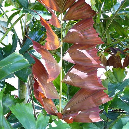 - رنگ برگ ها: برگ های تازه روییده این نخل به رنگ قرمز مسی هستند که با بالغ شدن به رنگ سبز تغییر می کنند. این تغییر رنگ، زیبایی و جذابیت خاصی به گیاه می بخشد و آن را در هر مرحله از رشد، چشم نواز می سازد.