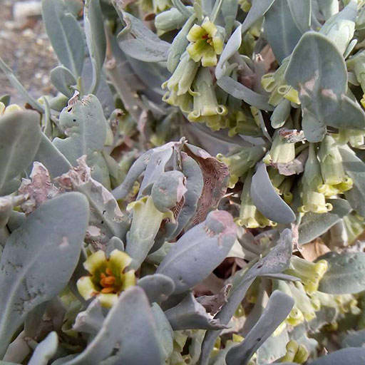 شکل و اندازه: گیاه Withania coagulans یک بوته کوچک و خاکستری رنگ با ارتفاع بین 60 تا 120 سانتی متر است و دارای شاخه های متراکم با رنگ خاکستری یا سفید مایل به زرد است.