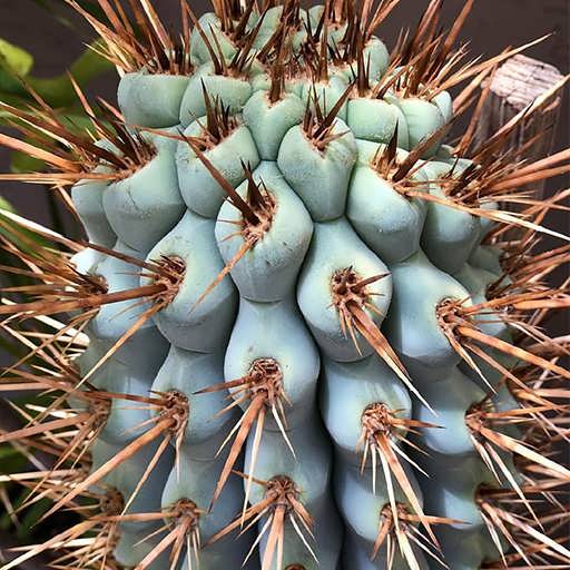 جز خانواده کاکتوسهای گلدار است که بعد از مدتی بر روی مرکز خارهای آن گل هایی ظاهر میشود که بعد از باز شدن داری رنگ سفید رنگ است و شبیه گل افتاب گردان دارای گلبرگ های کشیده میباشد.
