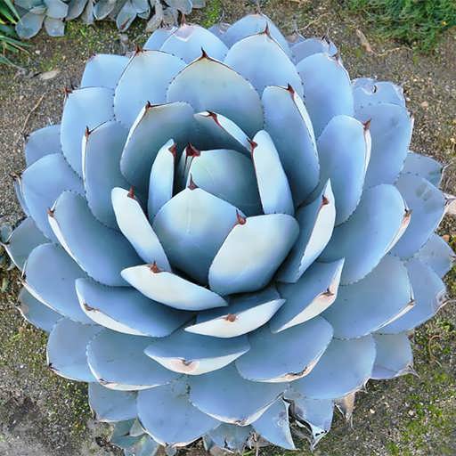 به خاطر برگهای آبی – خاکستری و سبز – آبی جذابی که دارد، معروف است. ارتفاع این گیاه معمولا ۴۵ الی ۶۰ سانتیمتر و از لحاظ پراکندگی عرضی ۶۰ تا ۹۰ سانتیمتر است. برگهای قطور، سفت، کروی و بیضوی و با طول ۳۰ سانتیمتر دارد. هر برگ دارای حاشیههای خاردار است. گاهی اوقات گل دادن این گیاه ۲۰-۳۰ سال طول میکشد.