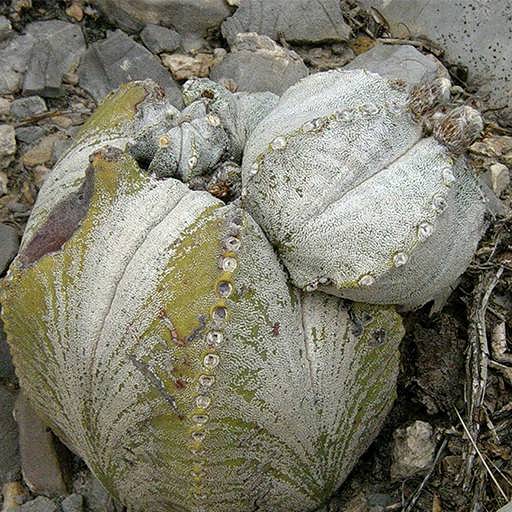 این کاکتوس معمولا دارای ۵ دنده هستند تعداد دندهها ثابت باقی نمیماند و با افزایش سن گیاه ممکن است بر تعداد آنها افزوده شود. این دندهها ممکن است ظاهری پیچخورده، عمیق، یا برجسته داشته باشد. این گیاه فاقد خار شعاعی و مرکزی است. آرئولها بر روی شیار موجود در بین دو دنده و در راس ساقه قرار دارند. این آرئولها به رنگ سفید هستند که به مروز زمان تغییر رنگ داده و زرد رنگ میشوند.