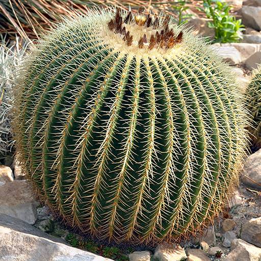کاکتوس اچینو تیغ سفید به بشکه طلایی مشهور است. این کاکتوس به خاطر شکل کروی و تیغهای جذابی که دارد طرفداران زیادی در جهان دارد. روش تکثیر این گیاه از طریق بذر است و به دلیل رشد کند، 25 سال زمان برای به گل نشستن و بذر دادن این کاکتوس لازم است. این کاکتوس به راحتی قابل پرورش و نگهداری است. اندازه نهایی این کاکتوس تا 90 سانتیمتر در شرایط ایده آل میرسد.