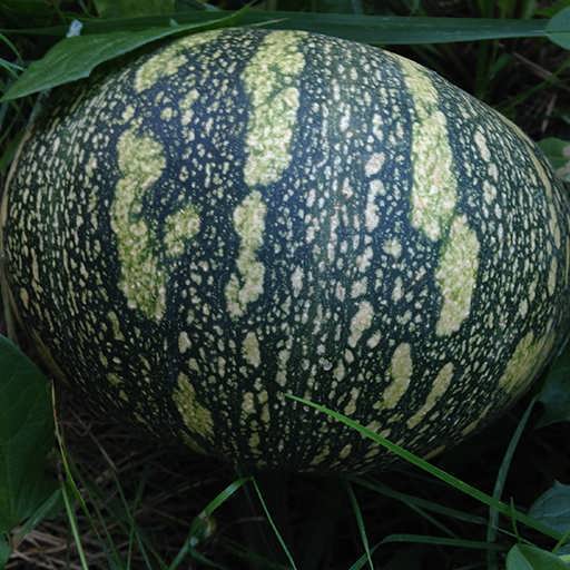 بوته این کدو به صورت رونده با رشد سریعی بر روی زمین گسترده می شود. این رقم کدو وقتی به ثمر می رسد اندازه ای متوسط و میانه دارند و رنگ ظاهری آن سبز است. قسمت داخلی و مغز کدو به رنگ زرد طلایی می باشد. همچنین در داخل کدو، تعداد زیادی تخمه خوراکی به رنگ سفید رشد می کند.