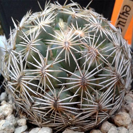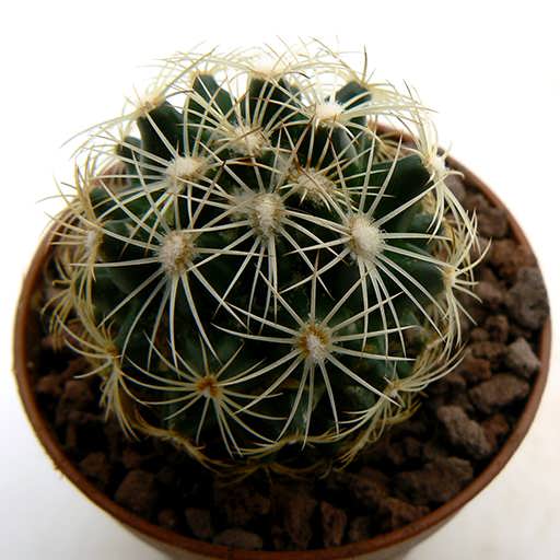 در مقابل خارهای مرکزی به رنگ قهوهای تیره هستند و طولی در حدود ۱ سانتیمتر دارند. این گونه بعد از گذشت چند سال خارهای مرکزی خود را تولید میکند. خارها از تعریق گیاه جلوگیری میکنند و آنها را از گزند حشرات و جانوران مصون نگه میدارد. این گیاه گلهای قیفی شکل و زرد رنگی تولید میکند. این گلها ابعاد نسبتا بزرگی دارند و دارای طولی در حدود ۶ تا ۷ سانتیمتر هستند. در نهایت گلها به میوههای سبز و آبداری تبدیل میشوند. میوهها دارای طول ۲۰ تا ۲۵ میلمیتری و عرض ۱۰ میلیمتری هستند.