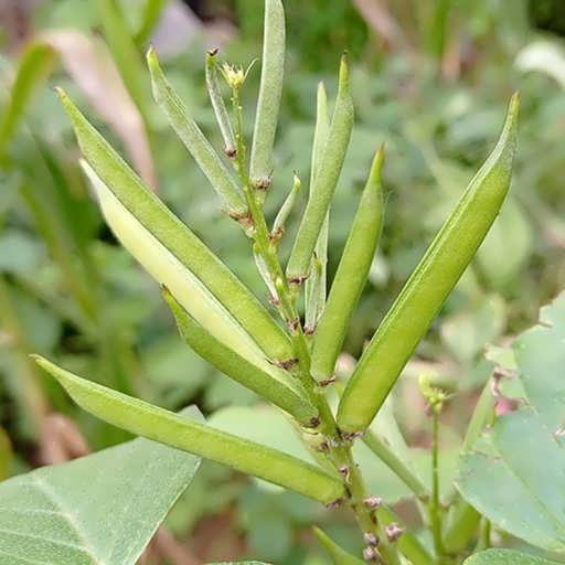 برگ های سبز رنگی دارد و از باردهی بالایی برخوردار است. علاوه بر دانه های خوراکی که استفاده های مختلفی از آن می کنند ریشه این گیاه نیز دارای باکتری های تثبیت کننده نیتروژن است که از این طریق مواد آلی و غنی نیتروژن را به خاک مورد کاشت اضافه می کنند.