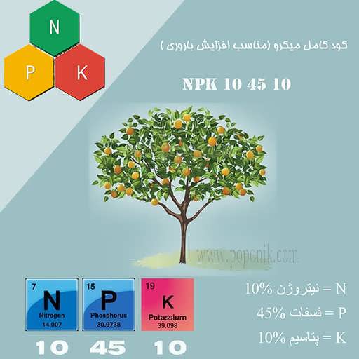 - کود NPK 10 45 10 برای افزایش محصول دهی گیاهان و درختان مورد استفاده قرار میگیرد.